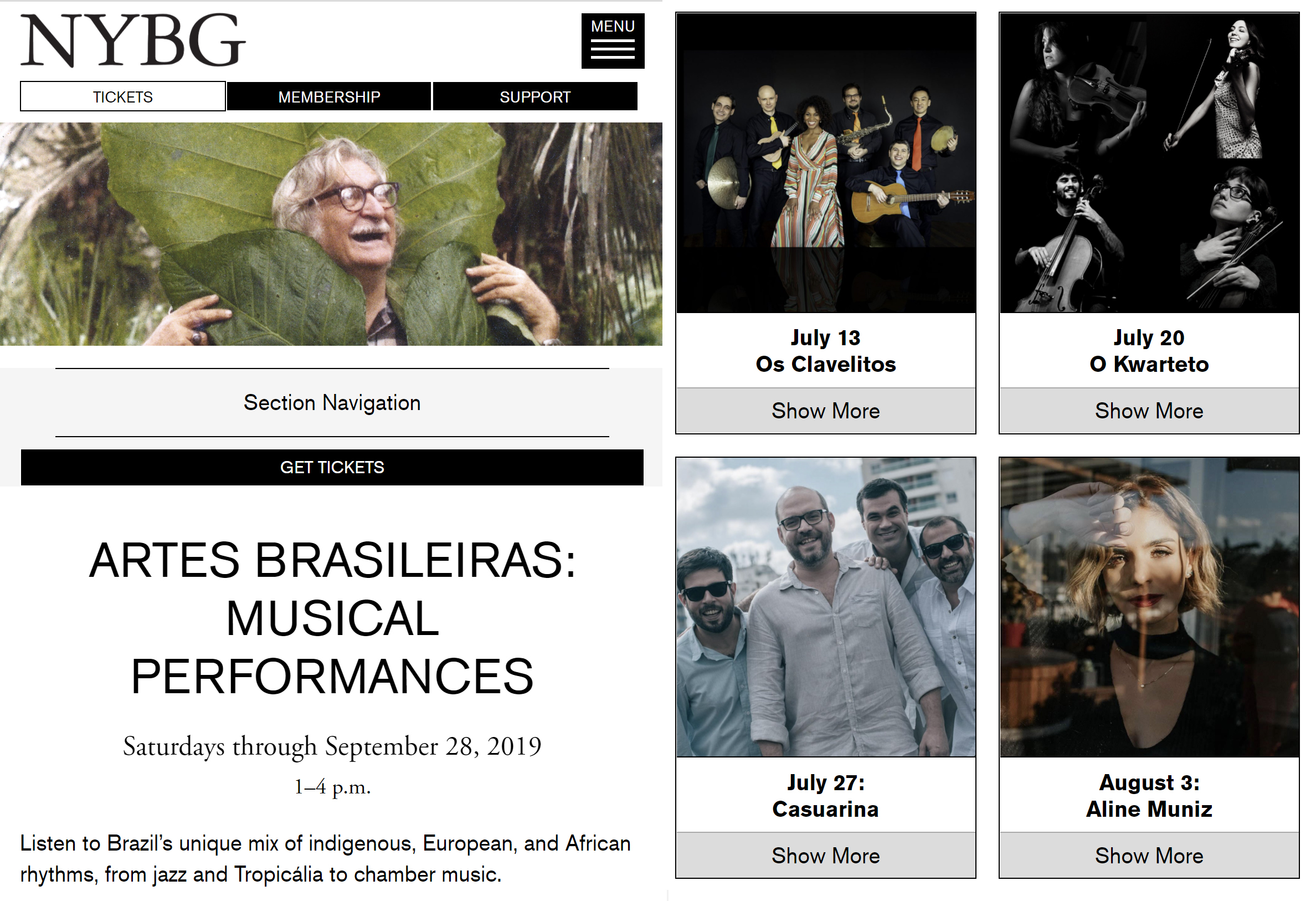 Os Clavelitos perform at The New York Botanical Garden on July 13, 2019, as part of the "Brazilian Modern: The Living Art of Roberto Burle Marx" Exhibit